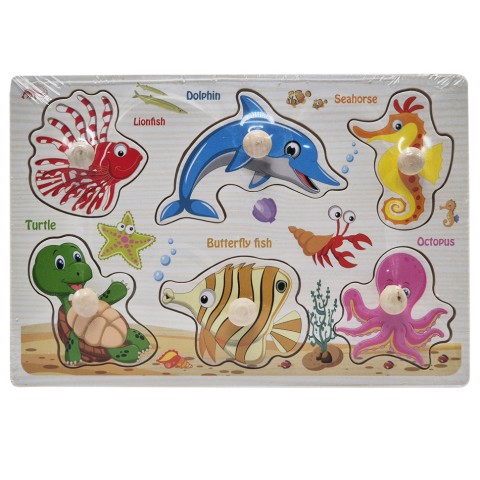 Дерев'яний пазл-вкладиш Морські тварини 53972-6 ручка-тримач, у плівці