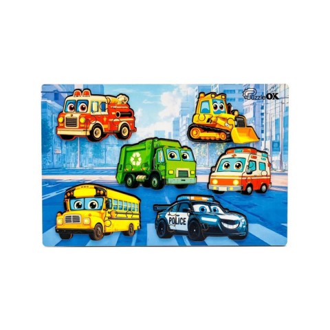 Дерев'яний пазл-вкладиш "Розумний світ: Міський транспорт" Puz-88747 А5, 18 елементів