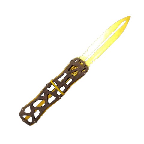 Ніж дерев'яний "ВИКИДУХА" СКЕЛЕТОН BLACK Матеріал: Березова фанера різних відтінків, виконана з фанери, ламінована золотою фольгою.Довжина ножа-23 см, ширина ручки-3 см. Чудовий подарунок для дитини чи фаната холодної зброї.Ніж дерев'яний, якісний та міцний. Служить довго. НЕ заточений, гострі частини закруглені та зашліфовані, повністю безпечний для дітей.
