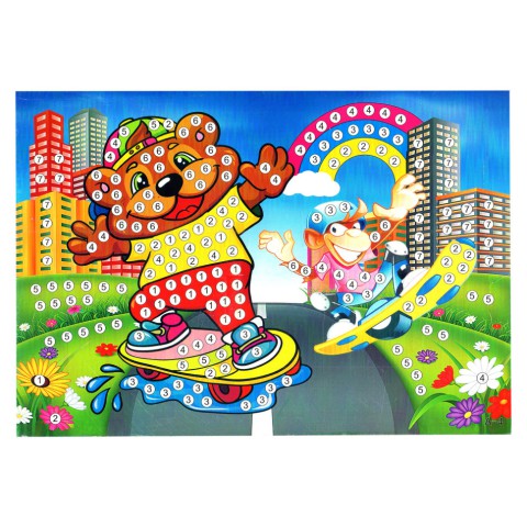 Дитяча мозаїка за номерами "Скейтери" 13-127-7 різнокольорові камінчики