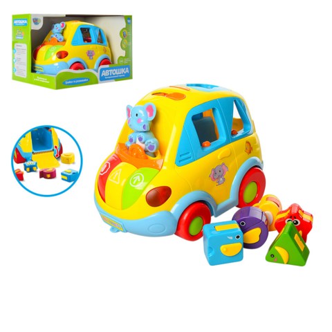 Машинка-сортер АВТОШКА LimoToy - багатофункціональна, розвиваюча, професійно озвучена іграшка зі звуковими та світловими ефектами. Іграшка сприяє розвитку у дитини мови, пам'яті, уяви, сенсорики та дрібної моторики рук.В Автошці 3 режими гри:* Рух. Довільне. Автошка самостійно їздить по кімнаті, об'їжджаючи всі перешкоди, що зустрічаються на дорозі, і співає кумедну пісеньку про правила дорожнього руху: - "Мене звуть Автошка, я їду по доріжці і кожному за правилами дорогу поступлюся. Зелене світло моргає - проїхати дозволяє, а червоне загориться — завжди зупинюся..." Під час руху іграшки водій-слоненя весело погойдується в такт музики.* Катання. Автошку можна використовувати як іграшку-каталку (до комплекту входить шнурок для катання).* Навчання. При натисканні на кольорові клавіші Автошка розповість, що потрібно робити, коли загоряється певний колір світлофора.* При установці геометричних фігурок у відповідне фігурці віконце, дитина почує назву цієї фігурки.* Гра. При натисканні на клавіші звучать кумедні мелодії.* У комплект входять 5 геометричних фігурок - трансформерів, що перетворюються на 5 видів тварин, які зручно розміщуються в багажнику Автошки. При установці геометричних фігурок у відповідне фігурці віконце, звучить голос тварини, що сховалася у фігурці.Машинка Автошка працює від 3-х батарейок типу АА/LR6 (у комплект не входять).
