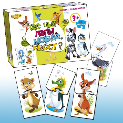 Дитяча гра-пазл "Де чиї лапи, морда, хвіст?" MKM0322, 24 деталі