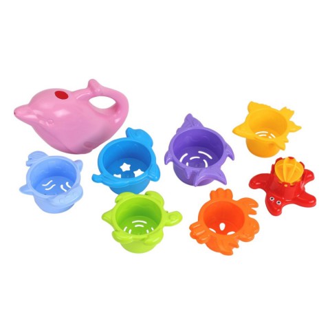 Набір для ванної "Пірамідка ТехноК" це цікава морська пірамідка та озера у формі дельфінчика. Такий набір принесе море радості Вашим дітям під час купання і перетворить його в захоплюючу гру.Пірамідка складається з семи елементів різного кольору і розміру. При цьому кожен елемент - ще й цікавий морський мешканець: дельфін, морський котик, краб, черепашка, морська зірка і рибки.Всі елементи можна зібрати пірамідку від більшого до меншого, чи складати один в один. Розміри кожної фігури підібрані пропорційно - сама велика «акула», а найменша «морська зірка». Кольори - як веселка, від червоного до фіолетового.На верхній фігурі «морська зірка» - млин, яка обертається при наливанні водички. Через ситечко на дні кожної формочки водичка «втече з пірамідки». І так можна грати багато разів. Елементи пірамідки також добре використовувати як формочки, а ситечко на дні - як штамп на піску.Лійка - необхідний атрибут для ігор з водою у ванній, на морі і в пісочниці теплими сонячними днями. Розмір лійки спеціально розрахований для маленької дитячої руки. Набрати воду легко, оскільки отвір розташоване зверху і не перекривається ручкою.Але крім розваг, ще й навчання. Побудувати і зруйнувати піраміду, вивчити кольори, розміри, форми, познайомитися з морськими мешканцями, і зробити перші кроки в рахунку. Лити воду на млин і спостерігати, як вона обертається - це вже справжня фізика. А ще безліч ідей, які придумає Ваш малюк. Адже така іграшка добре розвиває дрібну моторику, координацію, пам'ять, логіку і уяву.Набір зручно взяти з собою на прогулянку, він не займе багато місця в колясці або сумці.Іграшка для дітей від 1 року.Упаковка: сітка з кольорової картонної етикеткою.Розмір упаковки: 18,2х18х10 см.