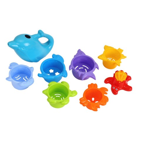 Набір для ванної "Пірамідка ТехноК" це цікава морська пірамідка та озера у формі дельфінчика. Такий набір принесе море радості Вашим дітям під час купання і перетворить його в захоплюючу гру.Пірамідка складається з семи елементів різного кольору і розміру. При цьому кожен елемент - ще й цікавий морський мешканець: дельфін, морський котик, краб, черепашка, морська зірка і рибки.Всі елементи можна зібрати пірамідку від більшого до меншого, чи складати один в один. Розміри кожної фігури підібрані пропорційно - сама велика «акула», а найменша «морська зірка». Кольори - як веселка, від червоного до фіолетового.На верхній фігурі «морська зірка» - млин, яка обертається при наливанні водички. Через ситечко на дні кожної формочки водичка «втече з пірамідки». І так можна грати багато разів. Елементи пірамідки також добре використовувати як формочки, а ситечко на дні - як штамп на піску.Лійка - необхідний атрибут для ігор з водою у ванній, на морі і в пісочниці теплими сонячними днями. Розмір лійки спеціально розрахований для маленької дитячої руки. Набрати воду легко, оскільки отвір розташоване зверху і не перекривається ручкою.Але крім розваг, ще й навчання. Побудувати і зруйнувати піраміду, вивчити кольори, розміри, форми, познайомитися з морськими мешканцями, і зробити перші кроки в рахунку. Лити воду на млин і спостерігати, як вона обертається - це вже справжня фізика. А ще безліч ідей, які придумає Ваш малюк. Адже така іграшка добре розвиває дрібну моторику, координацію, пам'ять, логіку і уяву.Набір зручно взяти з собою на прогулянку, він не займе багато місця в колясці або сумці.Іграшка для дітей від 1 року.Упаковка: сітка з кольорової картонної етикеткою.Розмір упаковки: 18,2х18х10 см.