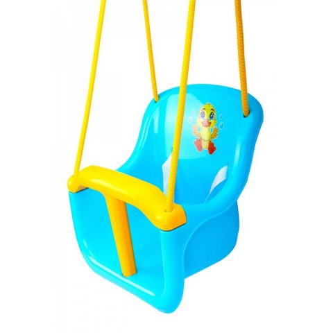 Для безпеки малюка передбачена надійна Т-подібна перегородка, яку за потреби можна підняти. Фіксатори перегородки знаходяться знизу гойдалки, тому підняти її може лише дорослий. За перегородку діткам зручно триматися ручками, що позбавить їх почуття страху. Гойдалки також комплектуються поясом із кріпленням.