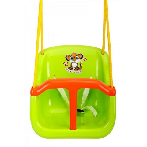 Для безпеки малюка передбачена надійна Т-подібна перегородка, яку за потреби можна підняти. Фіксатори перегородки знаходяться знизу гойдалки, тому підняти її може лише дорослий. За перегородку діткам зручно триматися ручками, що позбавить їх почуття страху. Гойдалки також комплектуються поясом із кріпленням.