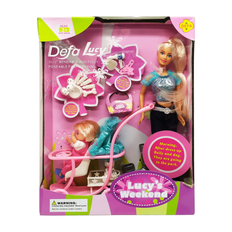 Барвистий дитячий набір з лялькою "Defa Lucy" 20958 включає в себе лялечку-маму в красивому вбранні з коляскою, щеням і безліччю різних аксесуарів. Лялька з аксесуарами виконана по прототипу Барбі, може похвалитися модними чобітками, в які Ваша маленька принцеса буде її наряджати, вирушаючи на прогулянку. Комплект доповнений подарунковим упакуванням розміром 34 х 25,5 х 6,5 см. Ігри з ляльками в доньки-матері позитивно впливають на розвиток комунікативних і соціальних навичок, допомагають соромливій дитині розкритися, тренують дрібну моторику і координацію рухів. Ошатна лялька з аксесуарами виготовлена з екологічно чистих матеріалів, безпечних для здоров'я Вашої крихітки.