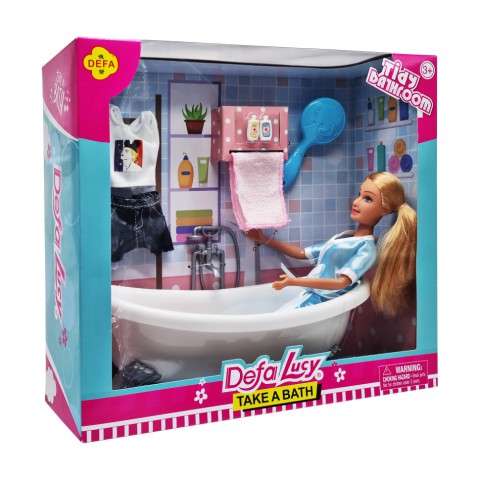 Дитяча лялька з ванною DEFA 8444 рушник, гребінець, одяг Блакитний