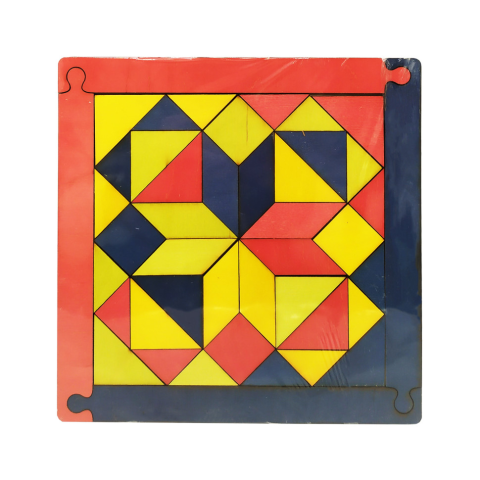 Мозаїка "Геометрика" виготовлена з фанери. Тильна сторона шліфована, без лакофарбового покриття, лицьова сторона повністю фарбована в 4 кольори, кожного кольору вкладено по 11 елементів, разом 44 елементи. Призначена іграшка для розвитку логіки, моторики, уваги і абстрактного мислення у дітей. Завдяки елементам в рамці можна не тільки вивчати кольори і геометричні форми, а й складати різноманітні фігури.