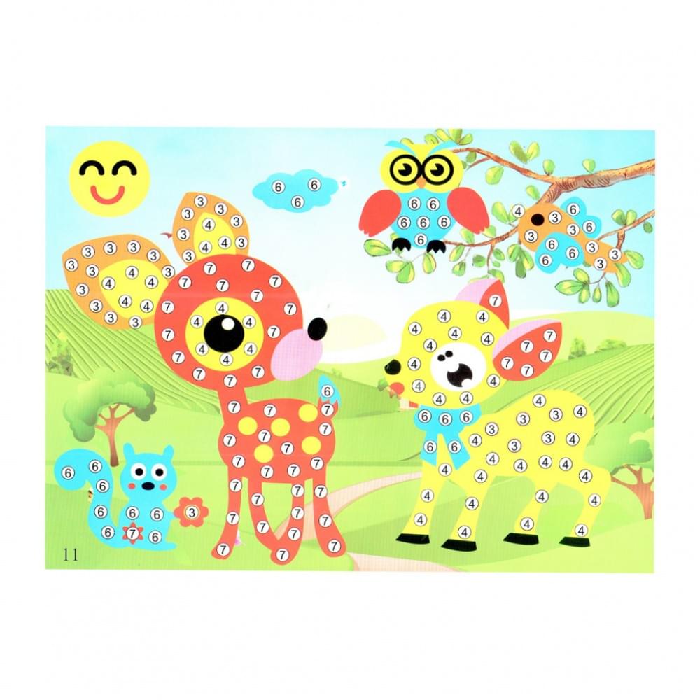 Цей набір включає мозаїку у формі каменів та картонний малюнок для її приклеювання. Використання мозаїки сприяє розвитку просторового та логічного мислення, а також допомагає знайомитися з формами та кольорами. Розмір малюнка становить 26х18,5 см.