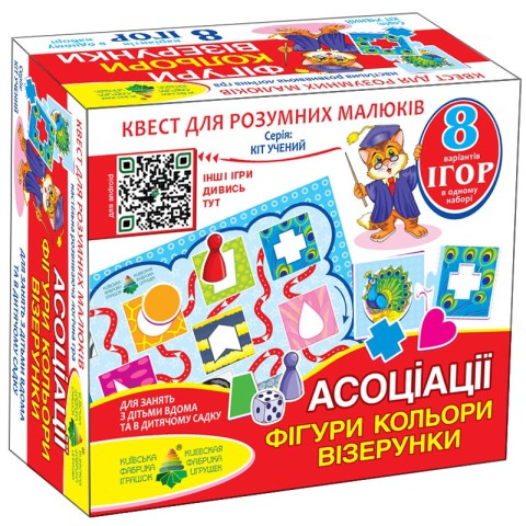 Гра-квест "Фігури, кольору" 84429, призначена для розумників старше трьох років, представлена в покращеній розвиваючій серії "Кіт вчений". В ігровий комплект входить все необхідне для занять, включаючи барвисте ігрове поле з кубиком і фішками, а також 18 х 3 комплектів головоломок. Набір дозволяє вибрати відповідну гру з 8 різних варіантів ігор, орієнтованих на дітей дошкільного віку. Оригінальна фірмова настільна гра в цікавій манері допоможе навчитися розрізняти тварин і їх забарвлення, складати з частин ціле, зіставляти окремі елементи за формою, кольором, розміром. Навчить дітей концентрації уваги, розвине просторову уяву, пам'ять, сприйняття, образне і логічне мислення, дрібну моторику рук. Завдяки своїй універсальності така розвага ідеально підійде як для занять вдома, так і в школах раннього розвитку і дитячих садах. Додайте різноманітності щоденним забавам свого непосиди, подаруйте йому цей барвистий набір. Гра української торгової марки «Енергія Плюс» допоможе Вашому непосиді з легкістю, в ігровій формі запам'ятовувати фігури і колір. Подібне проведення часу буде розвивати навички мови і пам'яті, логічне і асоціативне мислення, дрібну моторику пальчиків, естетичне сприйняття.
