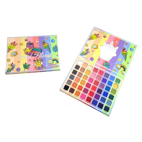 Гарний набір тіней на 48 кольорів. Такий подарунок не залишить байдужою жодну модницю. Палетка розкладна: на одному боці знаходиться палітра, а на іншому - невелике дзеркало. На палітрі розміщені тіні теплих і холодних відтінків. Є матові, шимерні та сатинові текстури. Упаковано в яскраву картонну коробочку.