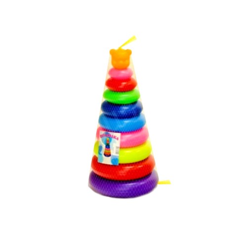 Яскрава пластикова пірамідка. Складається з основи, 9 різнокольорових кілець і верхівки в формі голови ведмедика.