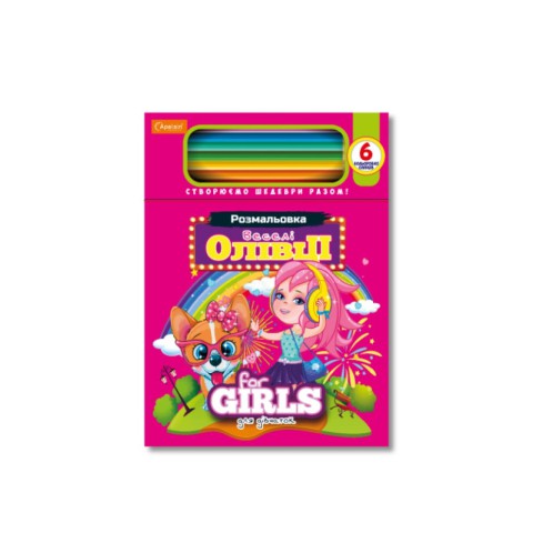 Дитяча розмальовка "Веселі олівці-для дівчаток" НТ-04-02, 6 олівців