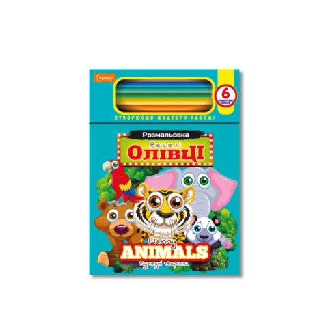 Дитяча розмальовка "Веселі олівці-кумедні тварини" НТ-04-03, 6 олівців