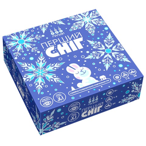 ПЕРШИЙ СНІГ — це гра з плашками (чи тайлами). Кожна плашка — це кристал, шоста частина сніжинки. У грі 9 сніжинок, які розділені на 6 ромбовидних плашок-кристалів.В коробці три гри: КРИШТАЛЕВІ ФЕЇ, ПЕРШИЙ СНІГ і СНІГОВА ГОРА. Кожну гру можна грати компанією або в соло-режимі.Гра розвиває пам’ять, уважність до деталей, логічне мислення, терпіння, цілеспрямованість та наполегливість.Вік гравців: 6+ років.Кількість гравців: 1-4 гравці.Комплектація гриВ коробці 54 плашки-кристали з частинами сніжинок.Книжечка з правилами у якій є 3 варіанти ігор.4 аркуші із заготовками для зимових прикрас: зі сніжинками та звірятами.Правила ігорГра КРИШТАЛЕВІ ФЕЇ знайомить гравців зі сніжинками та кристалами. У ній гравці разом складають 9 сніжинок.У грі ПЕРШИЙ СНІГ гравці прагнуть швидше скласти свої сніжинки. Всі плашки перевернуті і кожен гравець прагне запам’ятати чи здогадатись котра плашка його. Виграє той, хто швидше склад свої сніжинки.У грі СНІГОВА ГОРА гравці також складають сніжинки. На цей раз, більшість плашок лежать лицьовою стороною догори, але вони перекриті іншими плашками. Гравці мають впізнати свої кристали по видимих частинках плашок. Виграє той, хто швидше складе свої сніжинки.Кожну з ігор можна грати самому — у соло-режимі.Також в коробці є 4 аркуші зі сніжинками, зайчиком та котиком. Їх можна вирізати та зробити гірлянду, іграшки на ялинку, прикрасити вікна чи шафку в дитячій.