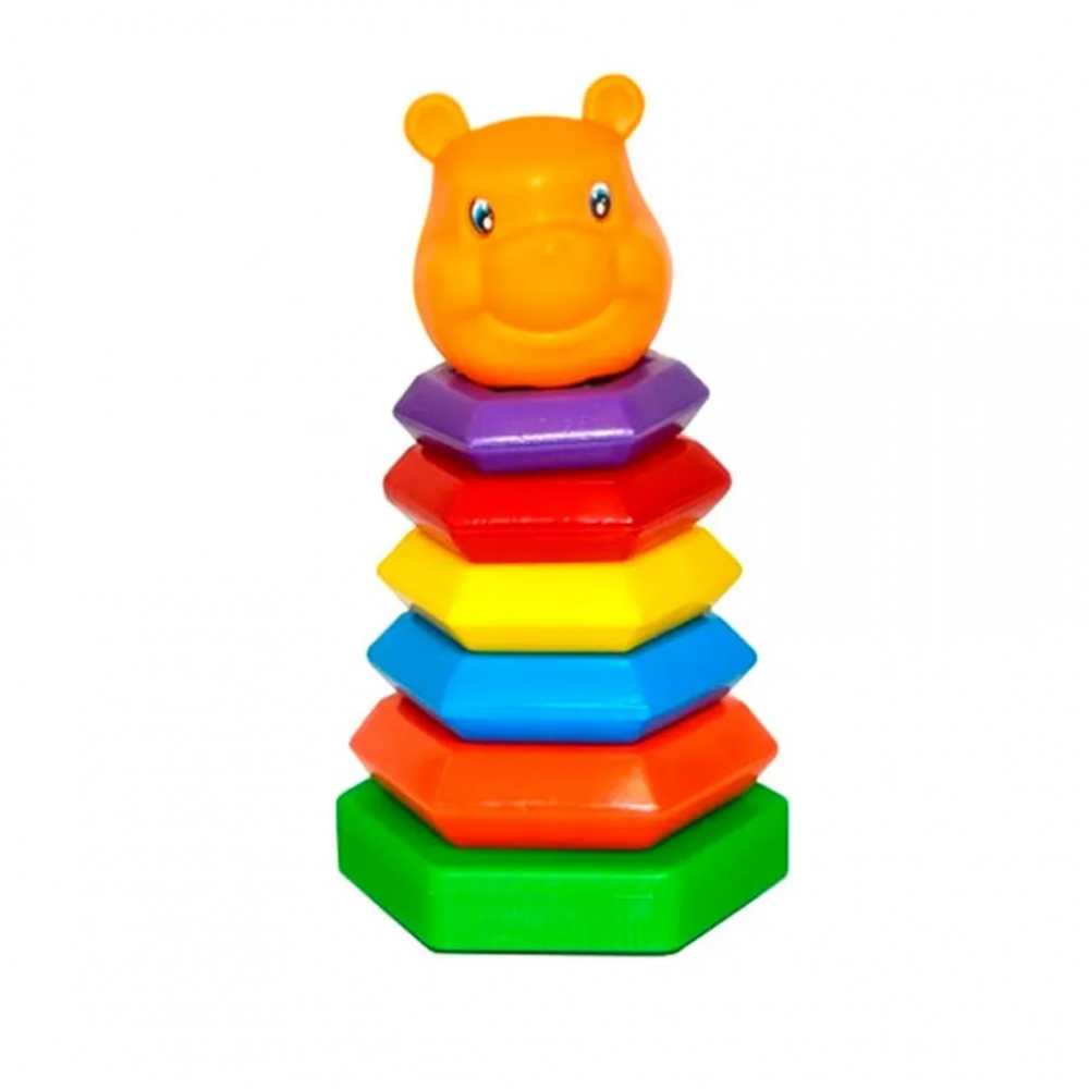 Пирамидка на основе, 6 колец шестиугольников, верхушка - медведь. Пластиковая.