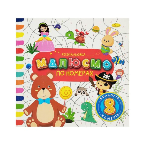Дитяча розвиваюча розмальовка за номерами РМ-62-04, 8 номерів, 8 кольорів