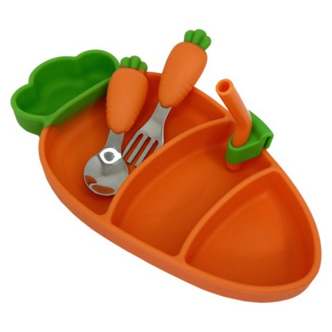 Дитяча силіконова тарілка з приладами "Морква" MGZ-0121