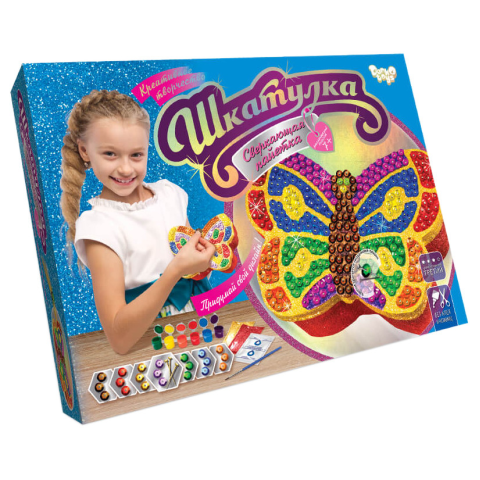 Дитина зможе створити справжній витвір мистецтва власними руками, відкриє нові таланти. У дитини розвивається дрібна моторика пальців, акуратність, логічне мислення.Особливістю даного набору є простота виконання: розфарбовування акриловими фарбами форми-заготівлі та декорування готового виробу дизайнерськими матеріалами.Комплект містить:- скринька пінополістиролова;- комплект із 6 кольорів акрилової фарби на водній основі;- пензлик;- комплект різнокольорових палеток на самоклейці;- акриловий лак на водяній основі;- Інструкція.
