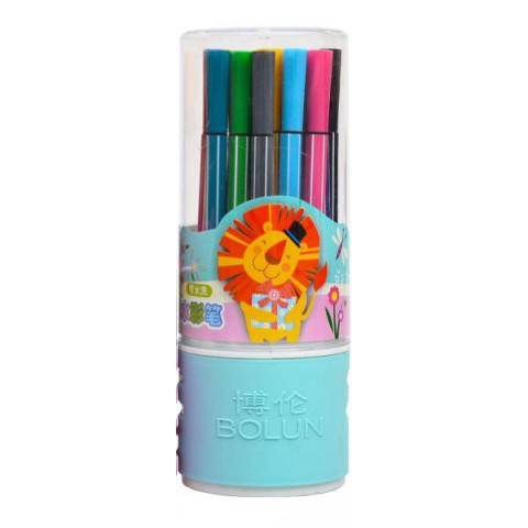 Набір фломастерів з нетоксичних матеріалів в пластиковому тубусі, 24 кольори, вентильований ковпачок.