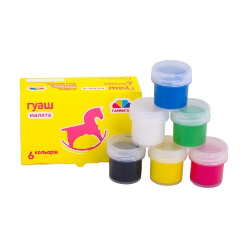 Гуаш – одна з перших фарб, які використовує дитина на своєму творчому шляху. Вона яскрава, швидко висихає, не має неприємного запаху, а головне безпечна для дитини. Малювати гуашшю можна пензликами різних розмірів та форм, поролоновими спонжами або просто пальчиками. Жодних меж для творчості. Серія Маля створена спеціально для дітей дошкільнят.