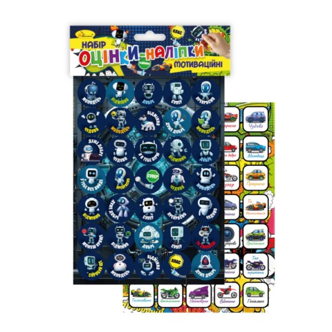 Мотиваційні оцінки-наліпки - саме те, що потрібно для вербального оцінювання в початковій школі, де оцінки відсутні. Також вони прекрасно підійдуть для використання в дитячих садочках. Ці яскраві стікери точно сподобаються дітям і замотивують їх до навчання.Оцінки-наліпки містять мотивуючі фрази, що спонукатимуть до дії, впевнено йти до своїх цілей, позитивно мислити, вірити в себе та свої сили.За допомогою оцінок-наліпок вчителі зможуть реалізувати методику заохочення маленьких учнів, у щоденники яких будуть вклеюватися симпатичні зображення із різноманітними фразами по типу:- дуже добре;- відмінно;- геніально;- бездоганно;- набагато краще;- спробуй ще;- я в тебе вірю;- ти зможеш;- це успіх;- хороша роботата багато інших.Формат/розмір: А5Кількість аркушів: 2Пакування та скріплення: запаковані в пакет поліпропіленовий з кольоровою картонною бандероллю.Блок: папір самоклеючий, крейдований папір; фігурна підсічка.