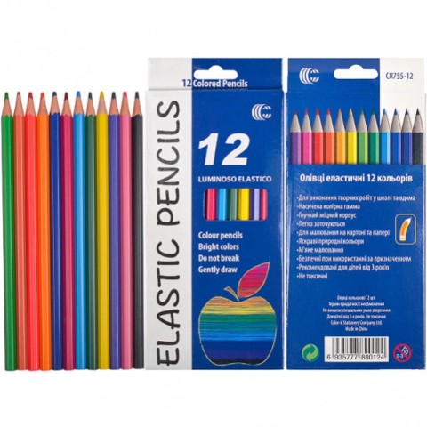 Набір кольорових олівців на 12 кольорів в картонній упаковці. На вигин трохи "еластичний".