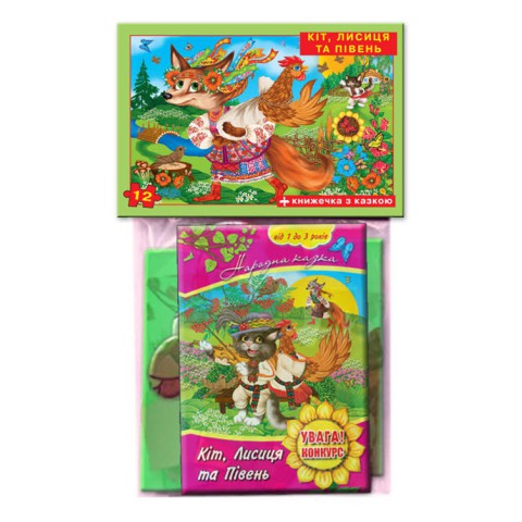 Дитячі пазли "Кіт, Лисиця та Півник" 81244, 12 деталей з книгою