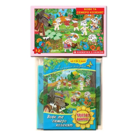 Юні казкарі і любителі цікавих історій по достоїнству оцінять захоплюючі дитячі пазли "Вовк і 7 козенят" 12+ до в пакеті 81176. Ігровий набір, представлений за мотивами української народної казки, - велике ігрове поле розміром 300 х 420 мм, з яким легко впорається навіть новачок. Картинка розділена на 12 частин, з яких дитині необхідно самостійно зібрати цілу картинку. У наборі є також повнокольорова, цікава книжечка з казкою. Подібні ігри з читанням дитячих казок не тільки розширюють словниковий запас малюка, але і допомагають правильно будувати діалог, розвивають зв'язну логічну мова. Складаючи елементи пазла, Ваш юний геній навчиться складати з частин ціле, зіставляти окремі елементи за формою, кольором, розміром. Казка не тільки допомагає формувати основи поведінки і спілкування, а й прекрасно розвиває фантазію, уяву і "слухову" пам'ять малюка. Після того, як дитина зможе складати цілісну картинку, ускладните завдання, запропонуйте дитині зібрати пазл на час, самостійно без сторонньої допомоги.