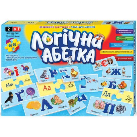 Розвиваючі пазли "логічна абетка" 2621DT призначені для прискореного вивченя алфавіту. Завдяки цій грі, процес буде відбуватися дуже весело, цікаво. В ігровій формі нова інформація завжди діточками запам'ятовується простіше і швидше. Настільні ігри, А саме "логічна абетка" 2621DT від відомого українського виробника порадує і якістю, і цікавим вмістом, і барвистим оформленням.Вона позитивно впливає на розвиток не тільки логічного мислення і пам'яті, а й дрібної моторики.Вік: 3+Кількість елементів: 66 штукРозмір упаковки: 28х20х4 сантиметраВиробник: Danko Toys