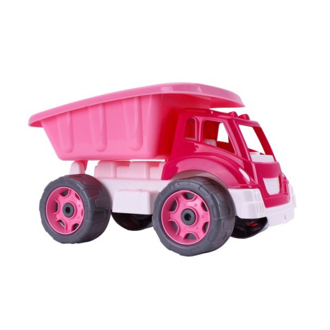 Самоскид стане улюбленою іграшкою кожної принцеси та займе почесне місце в ігровій кімнаті. З машинкою цікаво придумувати все нові та нові ігри у пісочниці, надворі та вдома. Можна перевозити матеріали для будівництва середньовічних замків, сучасних аеропортів та оригінальних будівель. На місткий відкидний кузов легко навантажувати та розвантажувати пісок, гравій, ба навіть, сніг, чи інші будматеріали. Міцні великі колеса з протектором забезпечують машині високу прохідність на різних дорогах. Так самоскид гарно їздить по траві, піску, та ґрунтовій дорозі. На передній частині бампера є отвір для мотузки, щоб улюблена іграшка завжди була поряд під час ігор на дитячому майданчику.