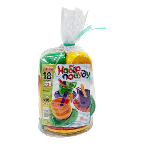 Дитячий ігровий набір посуду 70163 мультиколір 18 предметів, паяний пакет