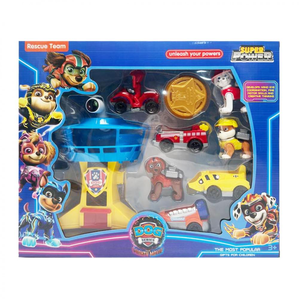 У комплект входять: вежа, 4 фігурки персонажів та 3 автомобілі. Вежа є центральним елементом гри та слугує базою для команди щенят.