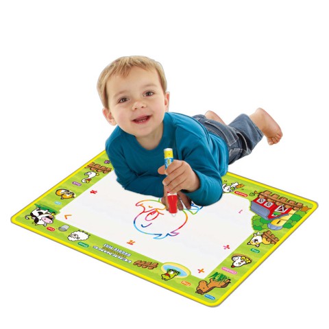 За допомогою килимка для малювання LT3942-43-44-45-1 дитина зможе малювати маркером, який наповнюється звичайною водою. Через десять хвилин картинки зникають і можна знову приступити до малювання нових. Під час гри з килимком малюк розвиває дрібну моторику пальців, художні здібності, може безмежно фантазувати і творчо мислити, стимулювати самовираження, розвивати посидючість, логіку, спілкування в соціумі. Завдяки килимку для малювання, батьки перестануть переживати за списані шпалери в будинку. Маркер з комплекту нешкідливий і нетоксичний, на ньому немає загострених місць, тому малюк не зможе поранитися.легкий і компактний килимок, завжди можна взяти з собою;килимок підходить для будь-якого віку;зроблений килимок з екологічно чистих матеріалів;розвиває мислення.