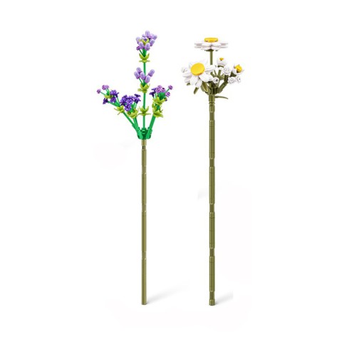 10 різних квітів у серії: лілія та матіола інкана (232 деталі) персикарія та ірис (237 деталей) платикодон і соняшник (212 деталей) ромашка та лаванда (243 деталі), а також троянда та конвалія (204 деталі).
