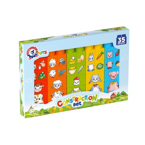 Як зацікавити дитину навчанням? Зробити це у формі гри! Іграшка "Конструктор ТехноК" допоможе діткам вивчити назви свійських тварини, їх "дітей", улюблені страви та сферу застосування.Всі «герої» нанесені на елементах різного кольору, що значно полегшить пошук відповідних картинок. Діткам потрібно самостійно зібрати основну фігуру з трьох великих цеглин: голова, тулуб і ніжки. А з менших цеглин підібрати їх малюків та смаколики. Додаткового ігрового моменту додає також картонна фігура дерева, яке можна зібрати на ніжку та використовувати під час різноманітних ігор.Крім основної мети – вивчати тварини, іграшка є звичайним конструктором, з якого легко конструювати вежі, будиночки, мости та різні фігури. Всі елементи відвідають по розмірах серії Конструктора ТехноК з великими блоками та можуть поєднуватися з ними.Зображення на цеглини нанесено сучасною технологією – термотрансфер. Такі зображення яскраві, не стираються після багаторазового використання та миття. Всі елементи конструктора виготовленні з високоякісної сировини, без запаху.У наборі 35 великих деталей, зручних для діточок вже від 2-х років, картонна фігура дерева.