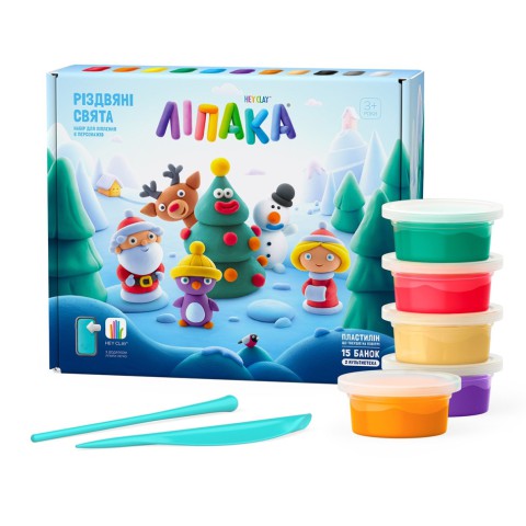 Меганабір самотвердіючого пластиліну ЛИПАКА – РІЗДВЯНІ СВЯТА – розважить і дітей, і дорослих. За допомогою анімаційних інструкцій у додатку HEY CLAY ви зможете зліпити 6 унікальних персонажів: Святого Миколая, Меланку, Пінгвіненка, Ялинку, Оленя і Сніговика. Пластилін твердне на повітрі за 24 години, після чого можна гратися створеними фігурками.