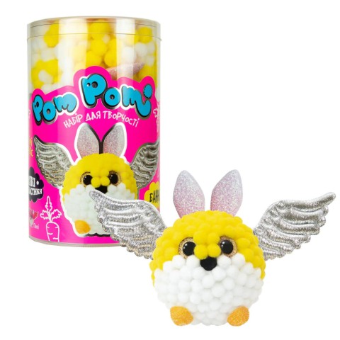 «Pom Pom Банні» - це набір для творчості, який допоможе вашій дитині самостійно зробити іграшку. У наборі є все необхідне для цього: куля-основа, помпони жовтого і білого кольору, скотч і прикраси (очі, носик, ніжки та інше). І завдяки помпонами Банні вийде дуже м'яким і приємним на дотик. Ця іграшка допоможе дитині розвинути дрібну моторику рук, фантазію і творчі здібності, а також відчути себе справжнім майстром.