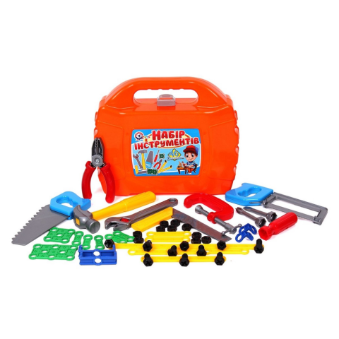 Іграшка доповнює "класичний" набір інструментів (молоток, пилки, викрутки, плоскогубці та ін) елементами конструктора, а саме: пластикові планки, куточки, пластини, болти і гайки. Це чудова нагода для малюка освоїти принципи роботи різьбових з'єднань, що безумовно буде затребуване в "дорослому" житті.