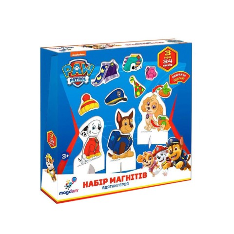 Дитячий набір магнітів "Щенячий патруль: Вдягни героя" ML4034-13, 3 героя 34 магніти