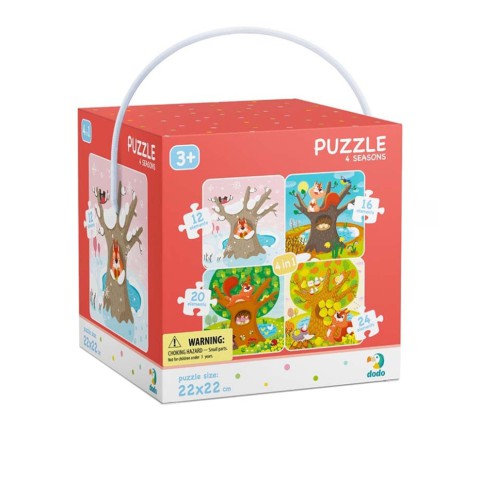 Пазл 4 в 1 "Пори року" української ТМ Додо в подарунковій об'ємній коробці-кубі з ручкою.