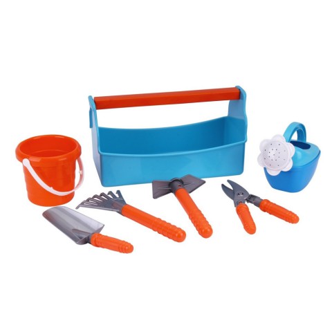 У наборі: секатор – 1 шт., совок – 1 шт., граблі – 2 шт., сапка – 1 шт., відерко – 1 шт., лійка – 1 шт., органайзер – 1 шт.