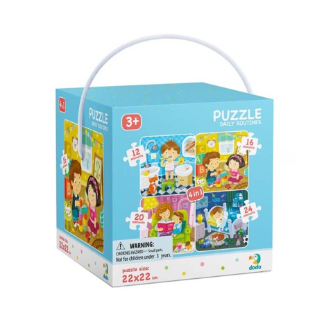 Пазл 4 в 1 "Мій день" української ТМ Додо в подарунковій об'ємній коробці-кубі з ручкою.