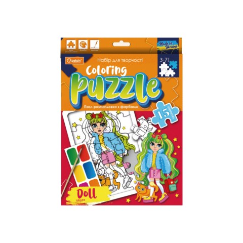 Дитячий пазл-розмальовка з фарбами "Лялька" НТ-11-04