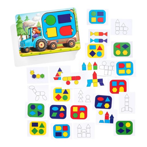 Розвиваюча гра у вигляді трактора, який зібрав урожай з різних фігур. Кузов трактора - це змінні основи 5-ти кольорів. Малюкові необхідно вставити різнокольорові фігури в основу потрібного кольору за подобою. Також з фігур можна викласти багато різних візерунків, персонажів, абстракцій. Ця гра - відмінний помічник у вивченні фігур, рахунку і кольорів. Запропонуйте дитині придумати для тракториста ім'я і тоді грати стане ще цікавіше.