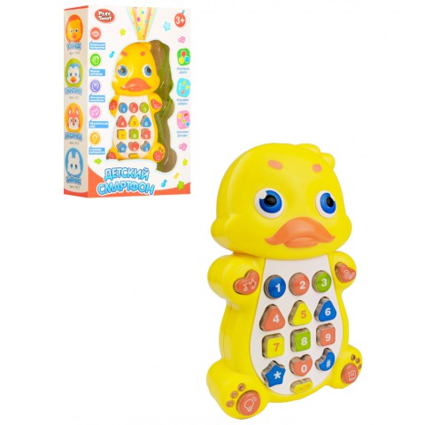 Телефон навчальний 7614, що володіє безліччю корисних функцій, відрізняється барвистим, привабливим дизайном. Кумедна розвиваюча іграшка представлена у вигляді милого звірятка, з яким Ваш малюк не побажає розлучатися ні на секунду. Міцний корпус, розроблений із зносостійкого, гіпоалергенного пластика, практично не має запаху і є абсолютно нешкідливим для дитячого здоров'я. Дитячий смартфон-звірятко розміром 14 см, з музичними ефектами українською мовою доповнений проектором. За допомогою іграшки Ваша дитина буде прослуховувати казки, вивчати цифри, віршики, нові кольори. Граючи і натискаючи на кнопки, дитина зможе самостійно активувати відтворення мелодій, розвиваючи дрібну моторику пальчиків і уяву. Завдяки вбудованому проектору Ваш малюк зможе направляти верхню частину телефону на чисту, білу поверхню, щоб подивитися зображення геометричних фігур і цифр.