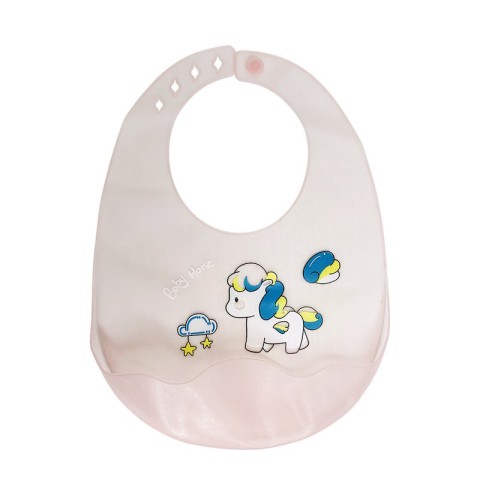 Виготовлений із м’якого силікону, не подразнює шкіру, не має запаху й легко миється під проточною водою. Регульована застібка дозволяє підібрати комфортний розмір у міру росту дитини та надійно фіксує слюнявчик на шиї.