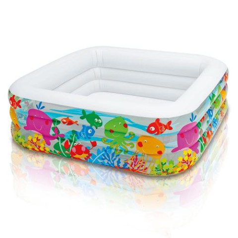Дитячий надувний басейн Intex 57471 «Акваріум» квадратної форми і прозорими вставками, наповненими малюнками морської тематики. Стінки басейну з світлого вінілу мають прозорі вставки-віконця, через них просвічує підводний світ барвистого акваріума. У басейні вистачить місця не тільки для вашого дитятка і його друзів, але також для тата або мами- адже разом завжди веселіше! Басейн має 3 окремі надувні секції з подвійними клапанами, це полегшує і прискорює установку і складання. Дно має клапан для швидкого зливу. Басейн виготовлений з міцного вінілу нового покоління витримує сильні стрибки і навантаження від падінь. Такий дитячий басейн прикрасить будь-яку дачну ділянку і порадує в спеку ваших малюків.Рекомендується: для дітей від 3 років.Довжина: 159 см.Ширина: 159 см.Висота: 50 см.Вага: 3.73 кг.Ємність: 424л при 80% наповнення.Виробник: Intex.Країна виробництва: Китай