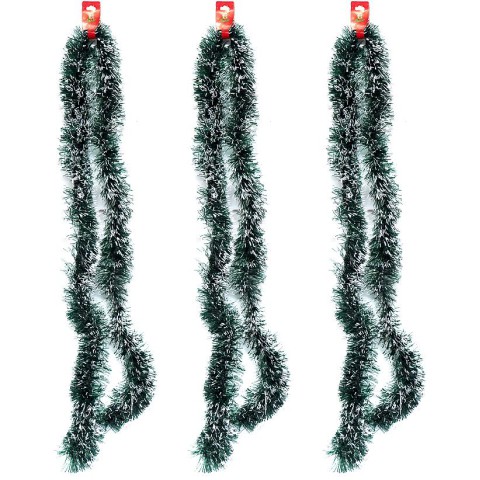 Новорічний дощик зелений з білими кінчиками довжиною 2 м і діаметром 11 см у наборі 10 шт – класична прикраса для ялинки! Густий і блискучий, він ідеально імітує засніжені гілки, додаючи святкового об'єму та сяйва.